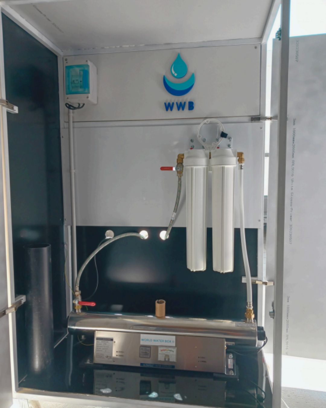 WORLD WATER BOX® (WWB®) has designed an innovative container offering a customized water purification solution. Whether for well water, river water, or rainwater, our system removes impurities, chemicals, and bacteria to ensure safe and potable water. With WWB®, enjoy pure, reliable water anywhere, anytime.
